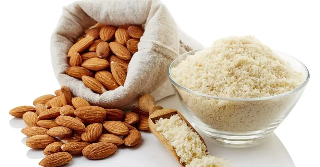 La harina de almendras se hace quitando la piel de las nueces, escaldándolas y luego moliéndolas hasta obtener un polvo similar a la harina. Es más bajo en carbohidratos que la harina de trigo y más alto en grasas y proteínas. La grasa adicional lo convierte en una buena opción para hornear, ya que la humedad adicional hace que los productos horneados sean livianos y esponjosos.